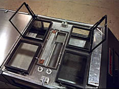The drying chamber, or conveyor housing, is approximately 20" (500mm) wide by 12" high (300mm) and is composed of individual welded sections of heavy gauge aluminum that are